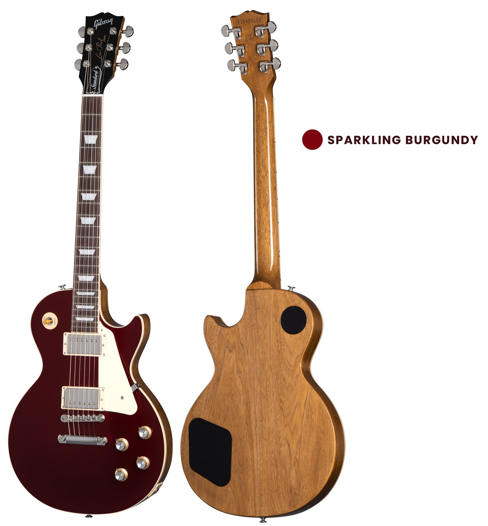 The Gibson Les Paul Standard ’60s Plain Top is equipped with a classic ABR-1 tune-o-matic bridge, aluminum stopbar tailpiece, Grover Rotomatic "kidney" tuners, and gold top hat knobs with silver reflectors. The mahogany neck has a 60s-style SlimTaper™ profile and a rosewood fingerboard with trapezoid inlays. It's equipped with a classic ABR-1 Tune-O-Matic™ bridge, aluminum Stop Bar tailpiece, Grover® Rotomatic® "Kidney" tuners, and gold Top Hat knobs with silver reflectors. The 60s Burstbucker™ pickups are loaded with Alnico 5 magnets and wired to audio taper potentiometers and Orange Drop® capacitors. Now available in attention-grabbing custom colors that are sure to turn heads, a hardshell case is also included.
