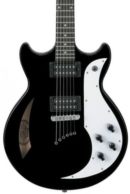 The semi-hollowbody Ibanez AMF73 Electric Guitar combines modern electronics with a retro style. Equipped with a flattop double-cutaway semi-hollow maple body, a set mahogany neck, and a 22-fret rosewood fretboard, the AMF73 guitar has Ibanez ACH humbucking pickups with ceramic magnets for a clean sound with a bit of overdrive.
