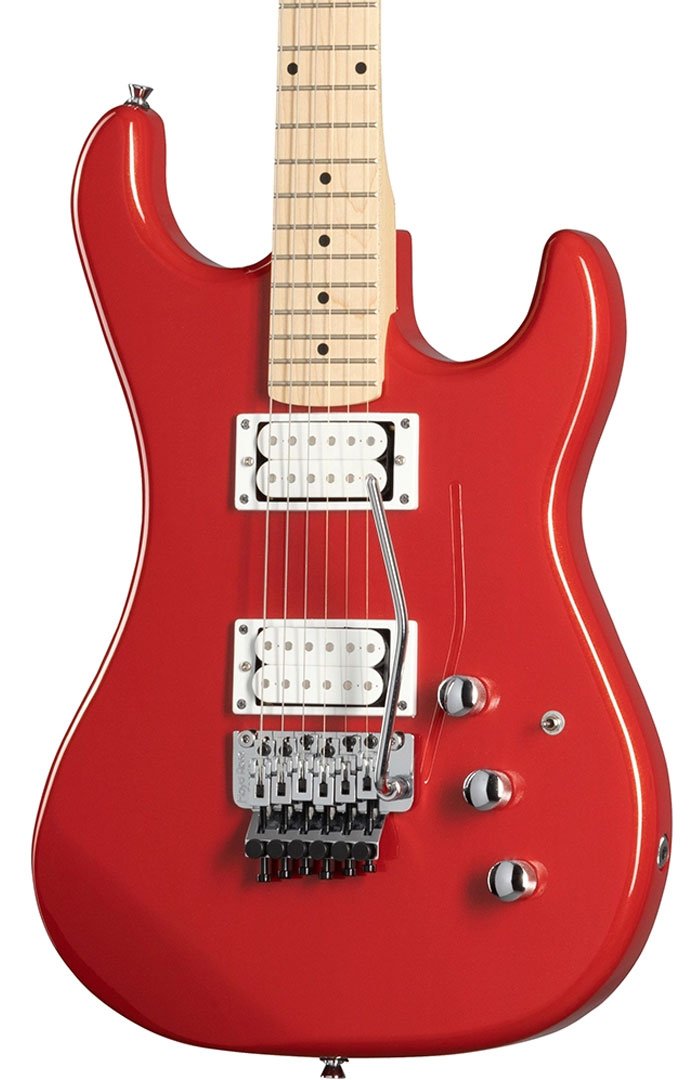 The Kramer Pacer Classic electric guitar is a tribute to the original 1982 Kramer, built for speed with a 25.5”-scale maple neck shaped in a Kramer K-Speed Slim-Taper C-profile and 22 medium-jumbo frets. It features an alder double-cutaway body, maple fretboard and licensed Floyd Rose RT lock nut. Its sound is driven by a pair of double white, open-coil Alnico 5 Classic humbucking pickups, two volume controls and a master tone control, and a licensed Floyd Rose tremolo bridge. Additional appointments include chrome hardware, die-cast tuners and dot inlays.