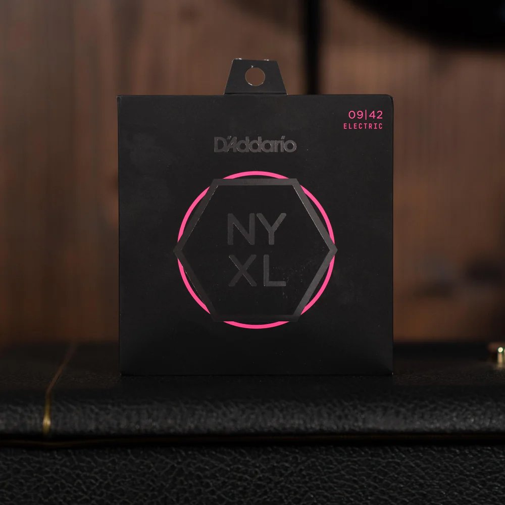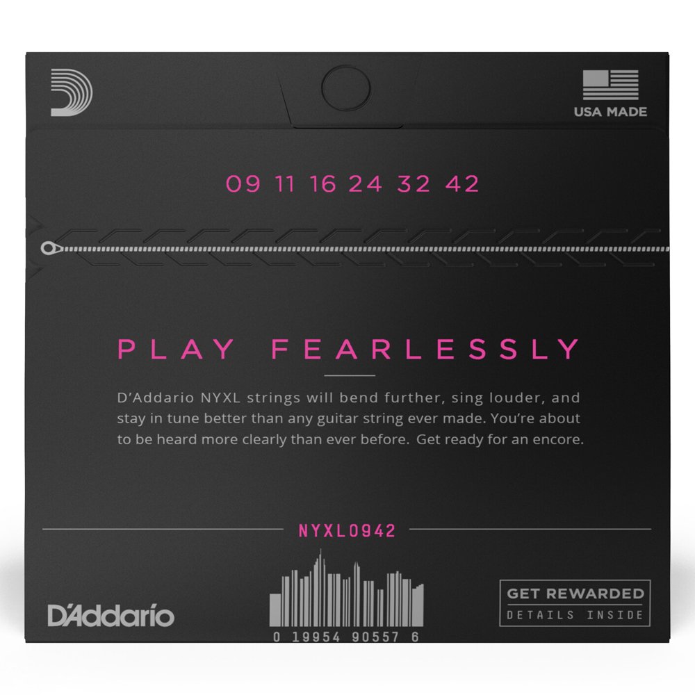 So, what really makes NYXLs so much different than standard D’Addario strings? First, they’re built with an exclusive high-carbon steel core wire for greater durability and a higher tolerance for alternate tunings. The other difference found on NYXL strings is the reformulated nickel-plated wrap wire, which delivers a subtle boost in output between 1kHz and 3.5kHz. With NYXL strings, you get a modernized sound and ferocious durability without sacrificing the easy playability you know and love. D’Addario NYXL electric guitar strings will bend farther, sing louder, and stay in tune better than any string you’ve played before. Envisioned, perfected, and manufactured by D’Addario in New York, this precision-engineered, break-resistant, high-carbon steel core and plain steel alloy delivers a whole new level of freedom, confidence, and power.