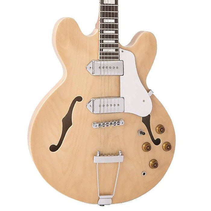 Maple is the chosen wood for the Vintage VSA500P Twin MW90 semi-acoustic Natural Maple or Vintage Sunburst. Fitted with a T.O.M. bridge and trapeze tailpiece, a pair of Wilkinson® MW90 pickups deliver warm, sparkly, single coil characteristics played clean, or play dirty for that unmistakable punchy, mid-range, overdriven single coil bite with the snarl of a humbucker.