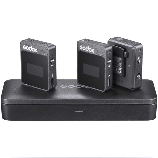 The MoveLink II M2 from Godox provides an easy-to-use and cost-effective entry into the world of hands-free wireless audio for a wide variety of content creators, including YouTube and TikTok personalities, vloggers, mobile journalists, and more. The system offers two ultracompact clip-on microphone/transmitters, two lavalier mics, and a two-channel camera-mountable receiver to provide a portable, all-inclusive solution that lets you record a subject's audio to a camera or phone with a 3.5mm input jack. Each of the two transmitters weighs less than 1 oz and features a built-in clip and an omnidirectional microphone, making it simple to attach it to a lapel or shirt for quick and easy, true-wireless audio. The M2 offers a digital frequency-hopping 2.4 GHz bandwidth system with a maximum range of 328'. For a more discreet look, you can use the included lavalier microphones and simply plug the mic's cable into the 3.5mm input port on either transmitter.