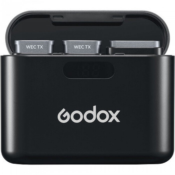 Record 2-person vlogs or interviews with the Godox WEC 2-Person Wireless Microphone System using its two clip-on transmitters with built-in microphones and dual-channel receiver with 3.5mm TRS connector. Attach your transmitters to your talent's lapel and mount your receiver to the cold shoe mount of your camera with the integrated belt clip. Use the included 3.5mm TRS and 3.5mm TRS to TRRS audio cables to connect the receiver to your camera or mobile device of choice. Both the receiver and transmitters can communicate from up to 656' away via 2.4 GHz frequency.