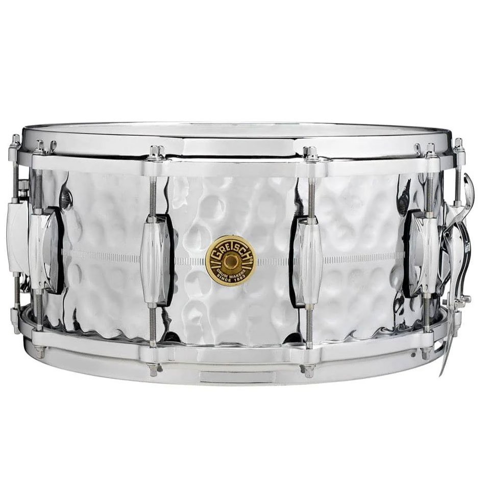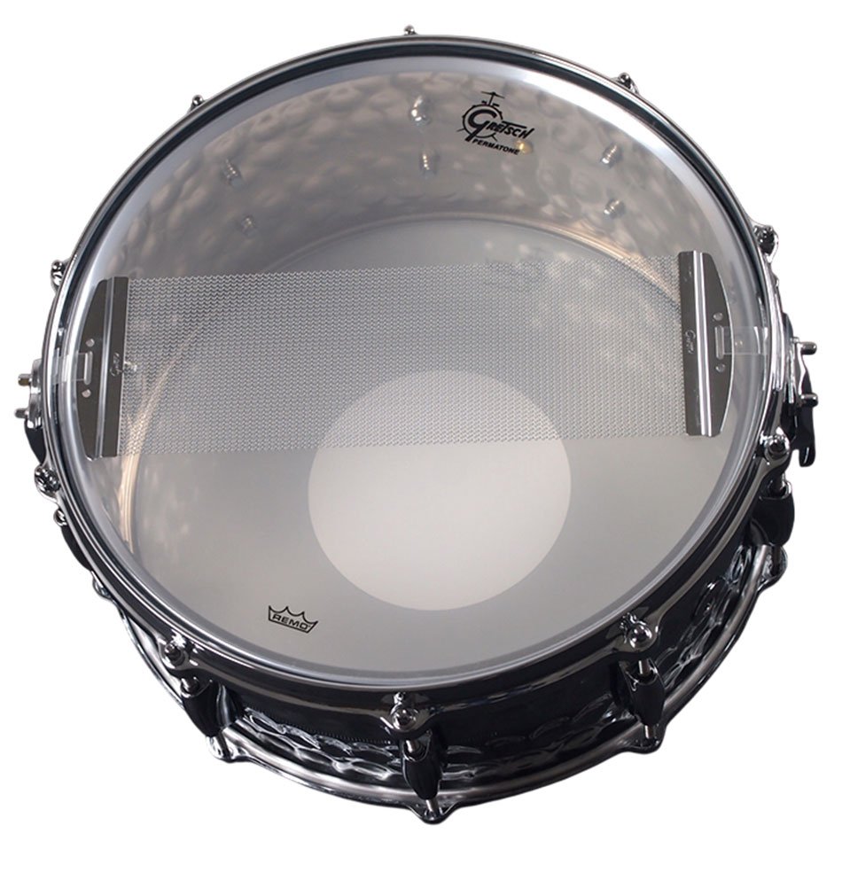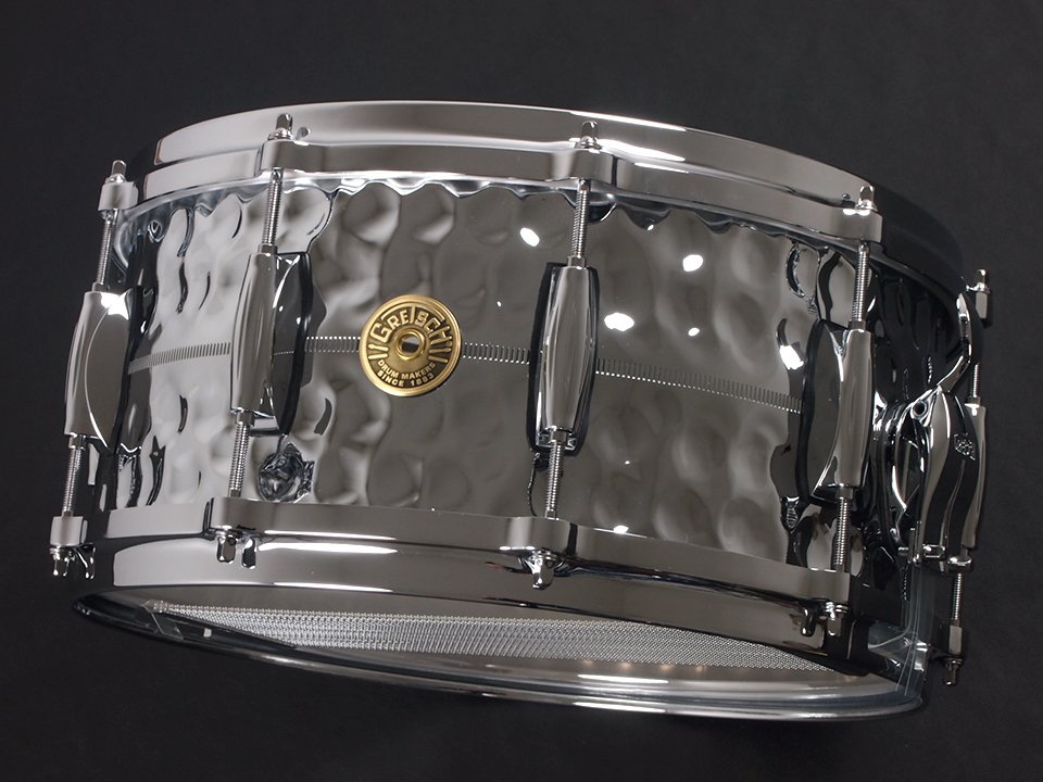 Lightning throw-off, diecast hoops, Snap-in key holder, Gretsch Round badge, Permatone coated top head, and 42-strand snare wires.