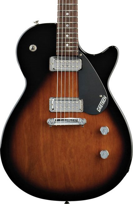 The Junior Jet II is a straightforward rocker with impeccable vintage credentials. It features 2 TV Jones® Designed Gretsch mini-humbuckers, a mahogany bolt-on neck with rosewood fingerboard, a chrome plated wraparound bridge, one volume and one tone control, a 3-way pickup selector, and vintage-style die-cast tuners. You simply can't go wrong.