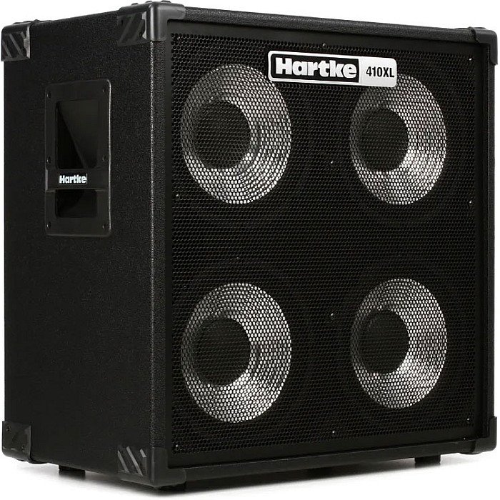 Hartke revolutionized bass amplification in 1984 with their iconic all-aluminum cone drivers. In short order, these speakers found their way into the original XL Series Bass cabinets, which delivered the broader dynamics needed by a new generation of bassists. Now, to celebrate 35 years of the "Hartke Sound," the 410XL V2 bass cabinet houses Hartke's classic all-aluminum speakers in a more rugged, modern cabinet with 400 watts of power handling. While serving up the same legendary sound that put Hartke on the map, the 410XL V2 offers a new look for a new generation of bassists. Its solid 3/4" plywood sealed cabinet enclosure no longer wears the black carpet of yesteryear, but now features a textured vinyl covering that is considerably more durable and modern-looking. A black perforated steel grille reinforces the strong, sleek look, while reinforced corners and inset carry handles confidently announce "road-ready." So hit the road with the Hartke 410XL V2. Vive la révolution!