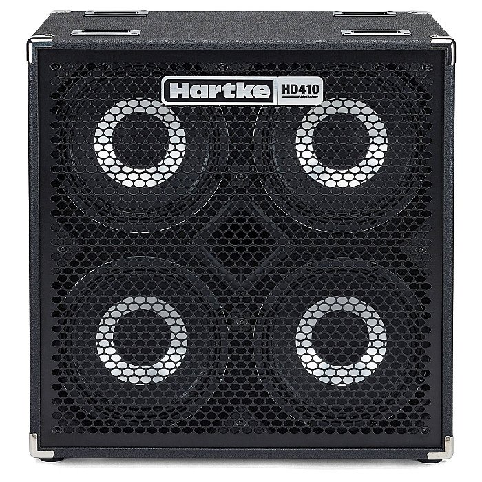 The Hartke HyDrive HD410 weighs in at a mere 63 pounds, yet there's nothing lightweight about its performance. This 1,000-watt cabinet delivers clean output and even response, thanks to its two-piece composite cones. Double-roll curvilinear surrounds prevent over-excursion, yielding extremely smooth mids, as well as clear fundamentals and natural overtones. Experience tight, chest-thumping low end and superior projection, by virtue of the HD410's round-wire voice coils and sealed cabinet design. Beyond that, this road-ready bass cab features solid plywood construction with extensive bracing and dado joints, as well as a perforated steel grill and steel corners. The HyDrive HD410 is loaded with every feature a modern bassist could want. The HyDrive HD410 is a sealed, dual-chamber cabinet constructed of solid plywood with extensive bracing and dado joints, making it rigid yet lightweight for superior projection and minimal energy loss. In addition, the HD410 features a black perforated steel grille, recessed steel handles, steel corners and removable casters, making it both durable and easy to transport.
