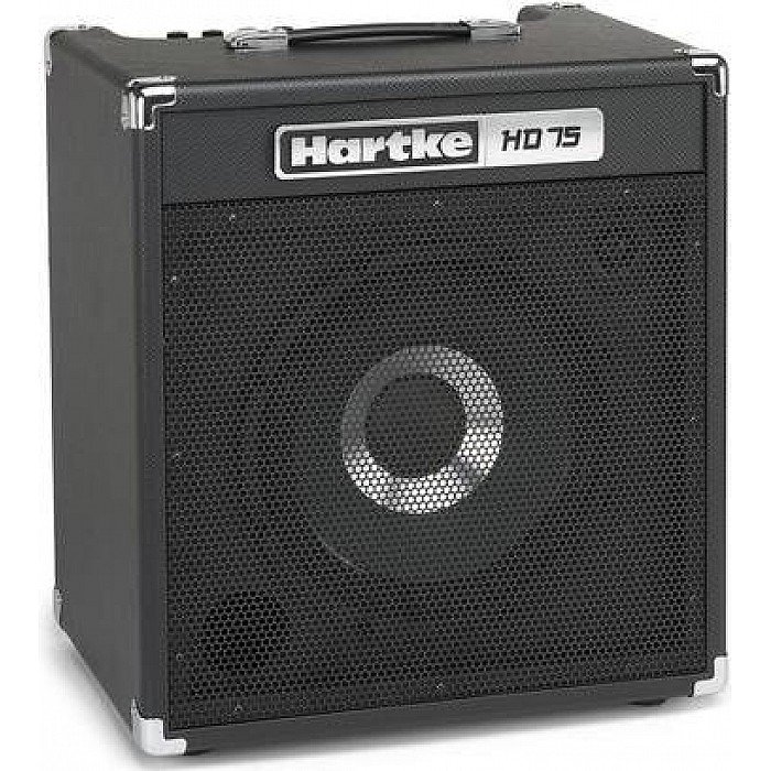 The HD75 (75 watts, 12" driver, 1" tweeter) employs Hartke's patented HyDrive Speaker Technology that offers a carefully crafted hybrid (half paper, half aluminum) cone bass speaker. By combining the warmth and roundness of paper with the punch and attack of aluminum, the HyDrive design produces serious tone that is ideal for bass players of all genres and styles.