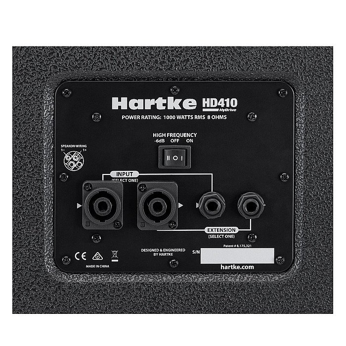 The secret to the HyDrive HD410's clean output and smooth response is its two-piece composite cones that combine straight anodized aluminum inner cones with curved, Kevlar-loaded paper outer cones. At Sweetwater, we're impressed by the smooth mid-band response, clear fundamentals, and natural overtones exhibited by this bass cab's round-wire voice coils, while its sealed cabinet design produces a tight, articulate sound. The HD410 sounds great, whether you use it by itself or as part of a larger rig. The Hartke HyDrive HD410 can take a beating. It's built from solid plywood with extensive bracing and dado joints. A perforated steel grill and steel corners add to this cab's durability. The HD410 is rock hard and rigid, yet it's light enough to carry one-handed. Recessed steel handles and removable casters make transportation a breeze. On top of that, this bass cabinet's innovative design delivers superior projection with minimal energy loss.