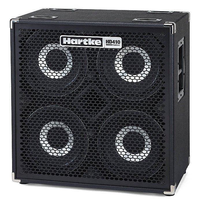 The Hartke HyDrive HD410 weighs in at a mere 63 pounds, yet there's nothing lightweight about its performance. This 1,000-watt cabinet delivers clean output and even response, thanks to its two-piece composite cones. Double-roll curvilinear surrounds prevent over-excursion, yielding extremely smooth mids, as well as clear fundamentals and natural overtones. Experience tight, chest-thumping low end and superior projection, by virtue of the HD410's round-wire voice coils and sealed cabinet design. Beyond that, this road-ready bass cab features solid plywood construction with extensive bracing and dado joints, as well as a perforated steel grill and steel corners. The HyDrive HD410 is loaded with every feature a modern bassist could want. The HyDrive HD410 is a sealed, dual-chamber cabinet constructed of solid plywood with extensive bracing and dado joints, making it rigid yet lightweight for superior projection and minimal energy loss. In addition, the HD410 features a black perforated steel grille, recessed steel handles, steel corners and removable casters, making it both durable and easy to transport.