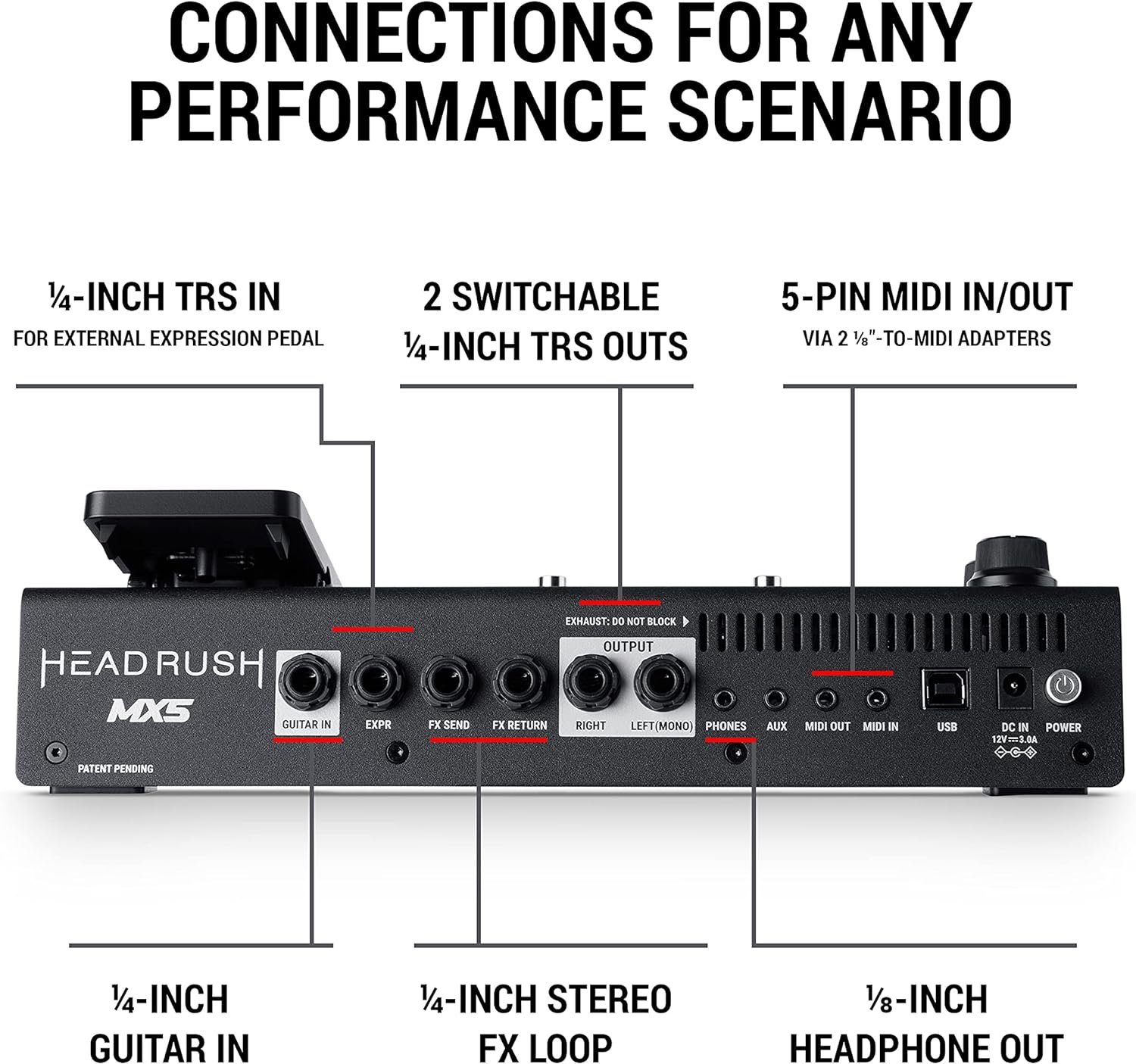 Headrush boards and processors are known for their accessibility, and for good reason — their user-friendly designs ensure that players of all skill levels can quickly find and design studio-grade sounds with only a few presses. To achieve just that, the MX5 is outfitted with a highly responsive 4-inch touchscreen. Taps, swipes, and drags are pulled off with zero latency, letting you adjust tones in real time. This is an exciting feature for many gigging guitarists, which is made even better with an ultra-bright HD display that shines clearly on even the darkest stages.
