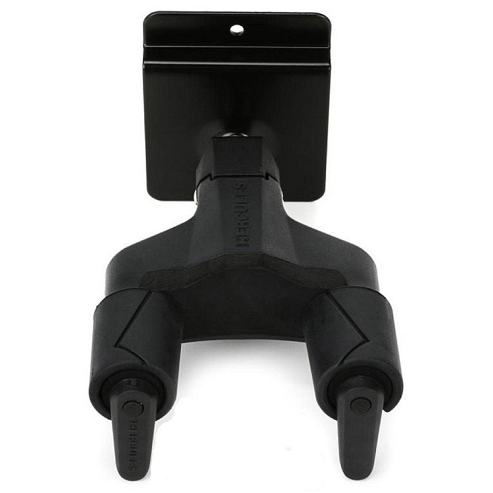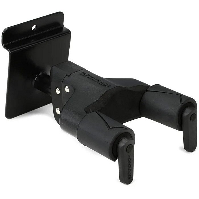 The HERCULES Auto-Swivel Yoke Hanger GSP39SB PLUS rotates automatically to accommodate different shaped guitars or basses vertically and safely. It features a slat wall base for display use.