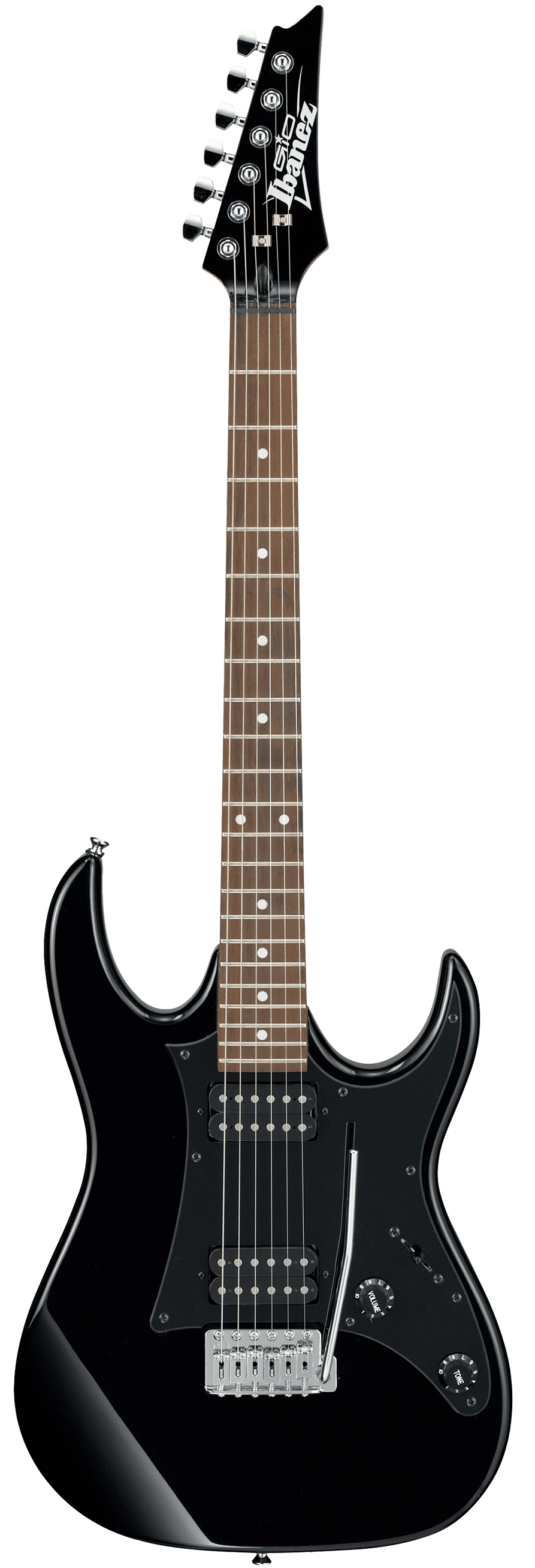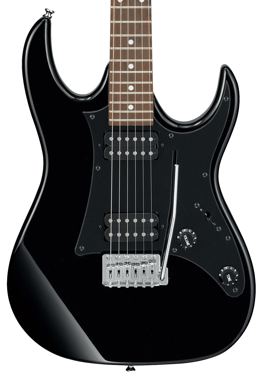 The Ibanez GRX20 Electric Guitar has a sleek neck and fast action. Two howling humbuckers-a Powersound 1 at the neck and a Powersound 2 at the bridge-crank out grinding, gritty tone by the busload. Standard rocking tremolo lets you dive bomb your way to musical bliss.