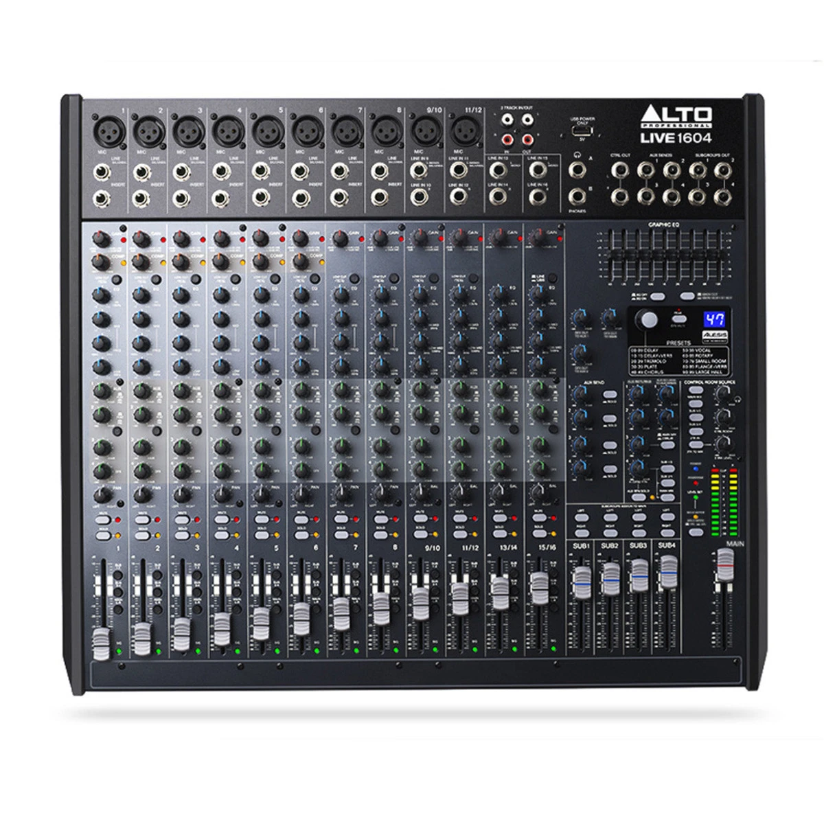 Nilai investasi mixer analog cukup bersahabat serta mixer jenis ini relatif lebih mudah dioperasikan sekalipun dengan pengguna pemula. Berapa brand mixer analog sudah dilengkapi pula dengan fitur prosesor efek. Prosesor efek internal Alto diproduksi dari brand besar Alesis produsen prosesor efek kelasi dunia. Jadi Anda tak perlu khawatir mendapatkan performa sound seperti pada panggung konser besar. Fitur prosesor efek membuat sumber suara (vokal, gitar, dan sebagainya) lebih mewah dengan dimuati efek reverb atau delay misalnya. Sejumlah mixer analog keluaran Alto yaitu Live 1604USB dan Alto 2404.