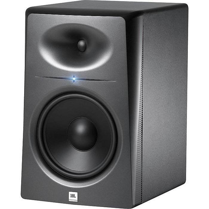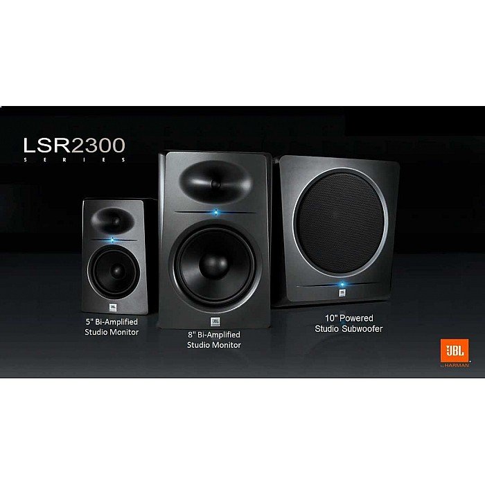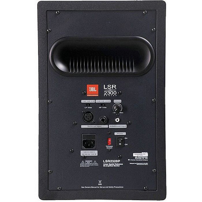 The JBL LSR 2328P is a bi-amplified studio monitor with magnetically shielded 238G 8" low-frequency transducer and 231H 1" silk substrate soft-dome high-frequency transducer mounted on an EOS waveguide with an elliptical aperture. The monitor features a 90W RMS amplifier for low frequencies, and 70W RMS amplifier for high frequencies; balanced XLR, 1/4 ", and unbalanced RCA inputs with detented level control; high- and low-frequency trim controls. The LSR 2328P monitor speaker comes wall-mount-ready with included mounting points.