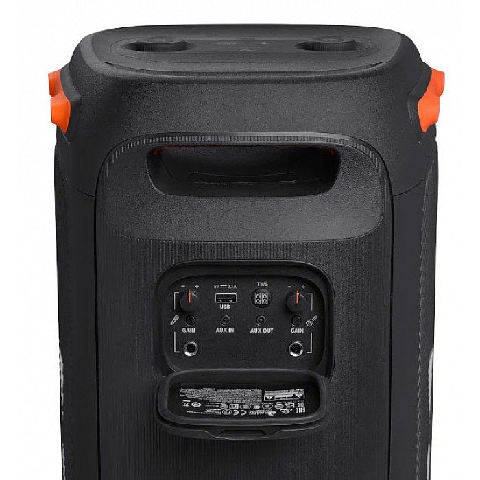 Bring new excitement to your party with dynamic and unique LED lights, synchronized with the powerful sound and deep bass of the PartyBox 110. Take the Partybox with you wherever you go with its splash-proof design and plug in a guitar and microphone for an amazing and exceptional experience. With Bass Boost and the thunderous JBL Original Pro Sound, your friends not only listen to music, but also experience a non-stop party with 12 hours of playtime. Use the PartyBox app for full control when you stream music wirelessly. While the JBL PartyBox 110 is mainly designed to receive streamed music from Bluetooth-compatible devices, it can also playback music from an (optional) USB stick, or an (optional) aux cable and wired component. Use the mobile JBL PartyBox app to conveniently manage the speaker with a mobile device. You can use it to control the music, customize the LED colors and patterns, and update settings.
