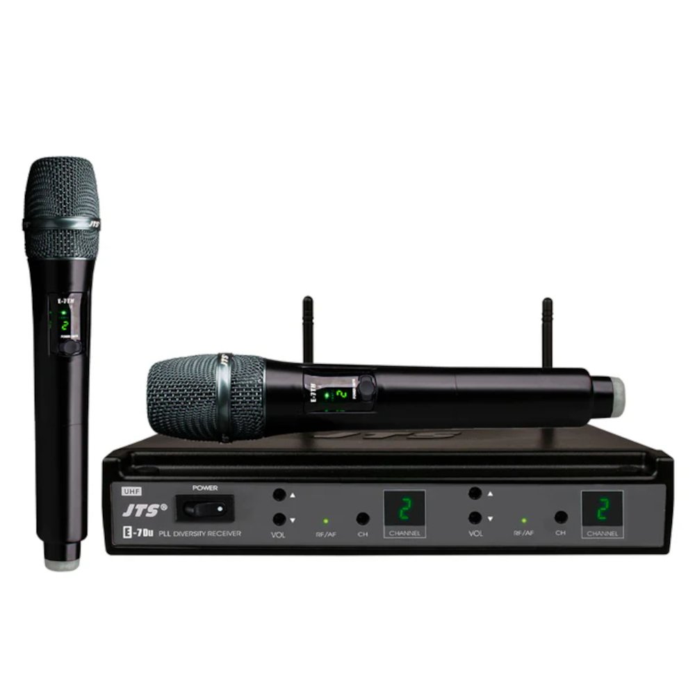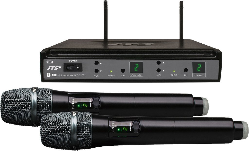 The E-7Du wireless microphone system is of latest wireless circuit design. It provides 16 selectable channels. Stable RF link and good audio performance are assured. 7 segments display makes operation easy