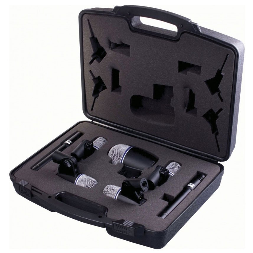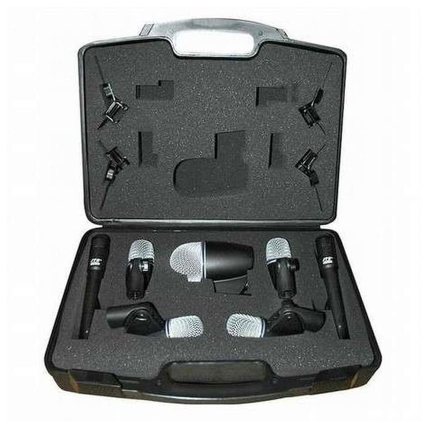 This is a seven-piece drum microphone kit that includes a dedicated bass drum microphone, four tom/snare microphones, and two condenser microphones. It is designed for close miking a five-piece drum kit and provides high-quality sound reproduction.