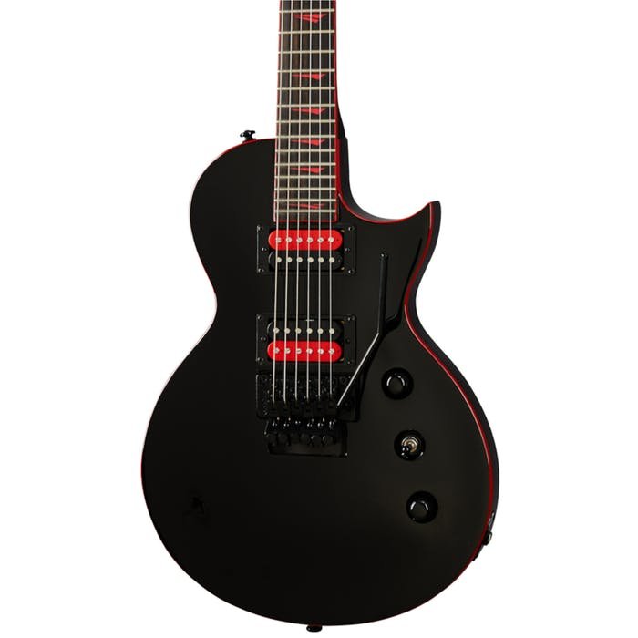The Kramer Assault 220 is a classic single cut, "LP" style electric featuring a light weight Mahogany Body and Neck and dual Alnico V humbucker pickups for that rich, timeless tone heard on so many recordings. The addition of a Floyd Rose locking tremolo allows for all the guitar acrobatics you could possibly imagine, making the Assault 220 a ferocious, vintage inspired shred machine! Finished in a sleek black finish with red trim, the Assault 220 has the looks to back up it's name!