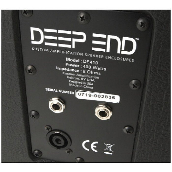 Light weight yet powerful, Deep End speaker cabinets are built with a 15mm-thick single wall cabinet construction and Plywood Baffle Boards to provide the right amount of responsive cab flex. The DE410 is rated at 400 watts and provides four, 10-inch Heavy Duty Kustom® bass speakers.