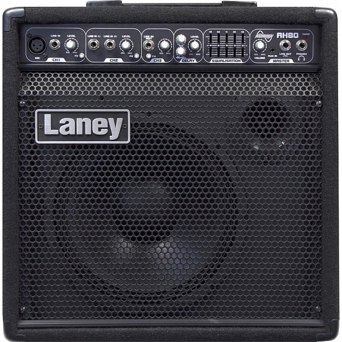 The AH80 multi-input combo features 3 channels, 5-band graphic master EQ and Digital Delay. 80W RMS power is coupled to a 10 in. woofer plus tweeter.