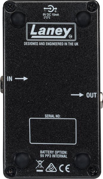 The guitarists here at here are love how easy it is to conjure up the perfect distortion tones with the Laney Monolith's straightforward 4-knob control set. The Distortion knob dials in the amount of gain and sustain, from subtle grit to massively distorted. The Range knob adjusts the amount of low-end content before distortion for a tighter sound — a must-have for muddy-sounding pickups. The Volume knob controls your output level; the Tone knob shapes the character of your distortion. You also get a 3-position Mode switch that toggles between D1 (a heavily compressed distortion), D2 (a softer, more expressive distortion), and Overdrive (subtle grit that's great for boosting the front end of your amp).