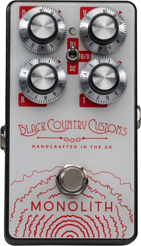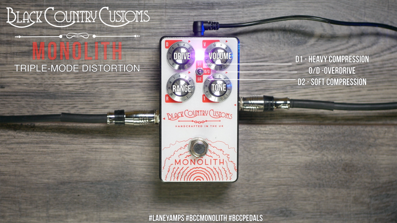 The Laney Black Country Customs Monolith puts an entire universe of distortion at your disposal. This triple-mode distortion effects pedal churns out the entire spectrum of distortion, from searing leads to fat power chords to jangly indie lines. You'll appreciate the touch dynamics of the Monolith; even when you crank the gain, it remains incredibly responsive to your pick attack. This harmonic-rich stompbox boasts a streamlined 4-knob layout with Distortion, Range, Volume, and Tone controls. The Monolith also features a tri-color LED for a clear visual reference to which mode you're using, along with dead-silent switching. Transparent buffered operation and a rock-solid metal housing round out the Monolith's many features. Guitarists hunting for a boutique-quality distortion pedal will find the Laney Monolith is out of this world.