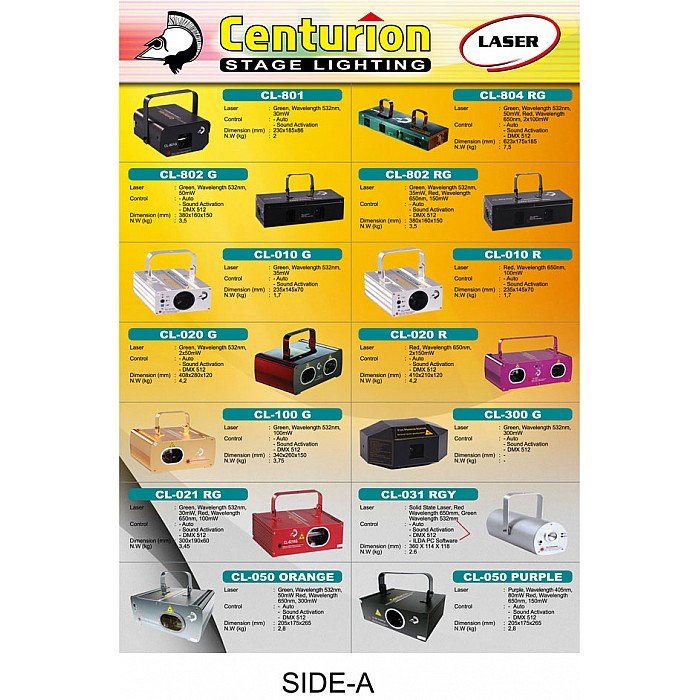 | 4 | CL-804/RG | 4 OUTPUT LASER RED & GREEN | G50mW + 2xR100mW | 4,500,000 |
