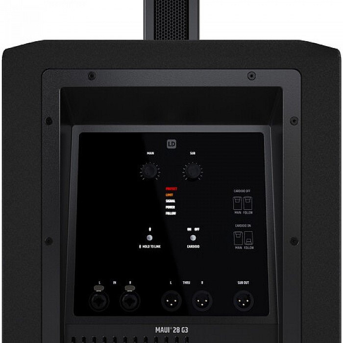 The LD Systems engineers fine-tuned the system to reduce harmonic distortion and interference and make the sound even more transparent, vibrant, and powerful, resulting in a highly precise reproduction of vocals and instruments across the entire 120 x 30° dispersion field. The MAUI 28 G3 is capable of cardioid subwoofer operation with the use of an additional subwoofer (separately sold). Simply press the Cardioid button to enable the onboard DSP's cardioid mode, which can lower the rear volume up to 18 dB. In addition, the ultra-durable polyurea coating of the subwoofer easily withstands even the toughest demands on the road.