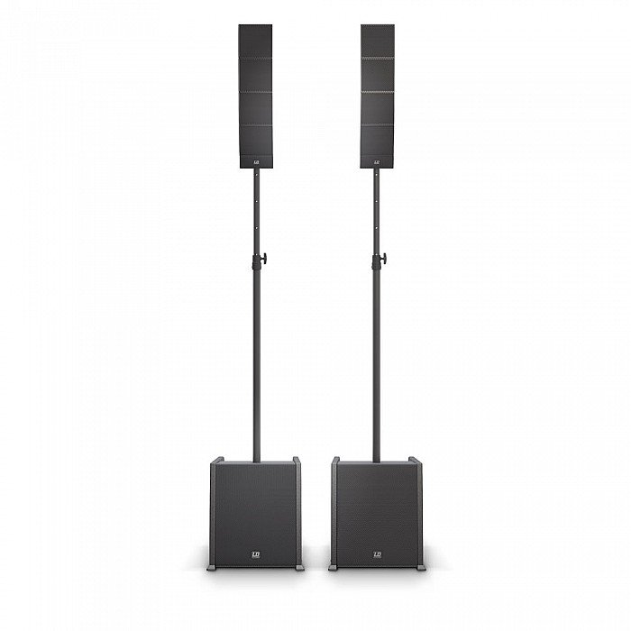 The compact, transport-friendly CURV 500® is an easily configurable array system with eight interlocking satellites, which are operated via a SmartLink® adapter. The elements, only 12 x 12 cm in size, are equipped with LD System's own WaveAhead® technology, one 4" and three 1" drivers provide a coherent and extremely detailed playback with high pressure and dynamics.