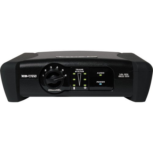 Its compandor-less circuitry and uncompressed 24-bit audio quality yield a frequency response of 10Hz to 20kHz, with a dynamic range of 118dB (A weighted), for a sound quality which rivals that of wired microphones. The XD-V35 features an operating range of up to 275' (83.32m), and its Encoded DCL (Digital Channel Lock) technology prevents interference from other 2.4GHz devices, as well as protects nearby analog systems for digital interference. Additional features include battery and signal status LEDs, 6 selectable frequencies on the front panel and support for up to 6 simultaneous systems.