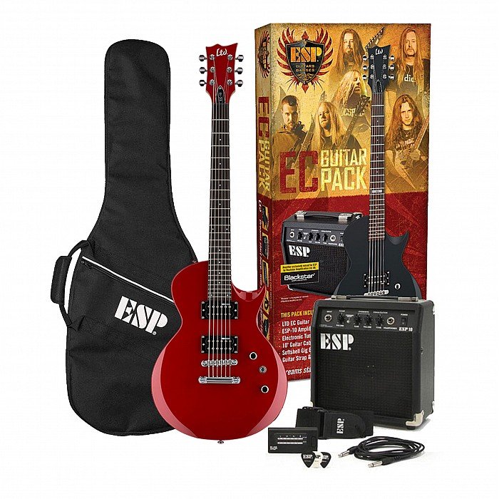 Even if you're just getting started on guitar, there's no reason that you can't get into the ESP family right away with the EC-10. A great instrument for beginning electric guitar players, the EC-10 has a smooth, comfortable, thin U-shaped maple neck that will make it easier to get around to chords and scales all over the fingerboard with 24 extra-jumbo frets. It has a well-balanced and contoured basswood body that's good for playing while seated or standing. When you're ready to rock, the EC-10's ESP Designed LH-100 pickups are great for any genre of music you like to play. It also includes a gig bag case, making it easier to get to lessons and friend's houses. For learning, jamming, songwriting and more, the EC-10 is a terrific choice that you can afford today. Available in Black, Blue, and Red.