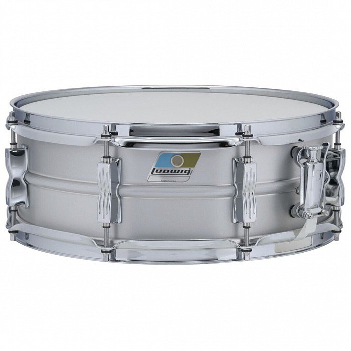A classic and well-known snare drum, the Ludwig Acrolite snare drum has been an aluminum shell favorite for years! Originally introduced in 1963 as a student drum, the Ludwig Acrolite quickly became the choice of professional players needing a dry, piercing snare sound. The Ludwig LM404C10 Acrolite Classic 5” the blue/olive badge. Made in Monroe, NC. UNITED STATES OF AMERICA. The Ludwig Acrolite was first introduced in 1963. It quickly became the choice of pro players looking for a solid dry cracking snare drum tone. This snare drum has a seamless beaded brushed aluminum shell. Classic Ludwig dual snare lugs, a p85 strainer and 2.3mm hoops. All these features contribute to the dry cutting tone of this drum. The Ludwig Acrolite is a seasoned vet of the stage and studio.