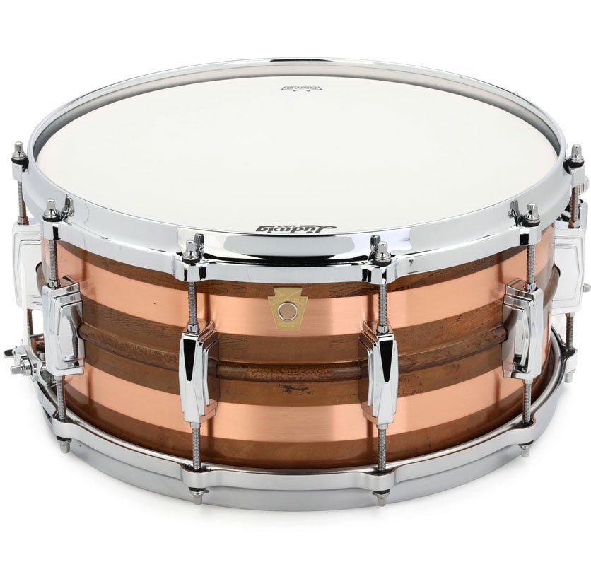 Many drummers here at here collect snare drums, and for good reason. The right snare sound can transform a decent song into an instant banger! Copper snares are a popular choice when the track calls for a dark, warm, and dry sound. This striped copper snare drum Ludwig has all of that, and more. Featuring die-cast hoops, imperial lugs, and Ludwig's famous P88 snare throw off with P35 butt plate combo, this beauty is likely to become your main go-to snare drum after you hear all it has to offer. The Ludwig 14x6.5 Raw Copperphonic Snare Drum (LC663S) features a seamless beaded 1.2mm copper shell with 45 degree bearing edges, 10 double-ended Imperial lugs, 2.3mm triple-flange hoops, P88AC throw-off, P35P butt plate, Ludwig 18-strand snare wires, Ludwig Coated Weather Master batter drumhead, Ludwig Clear Weather Master snare side drumhead, raw natural patina finish, chrome hardware, and Ludwig Keystone badge.