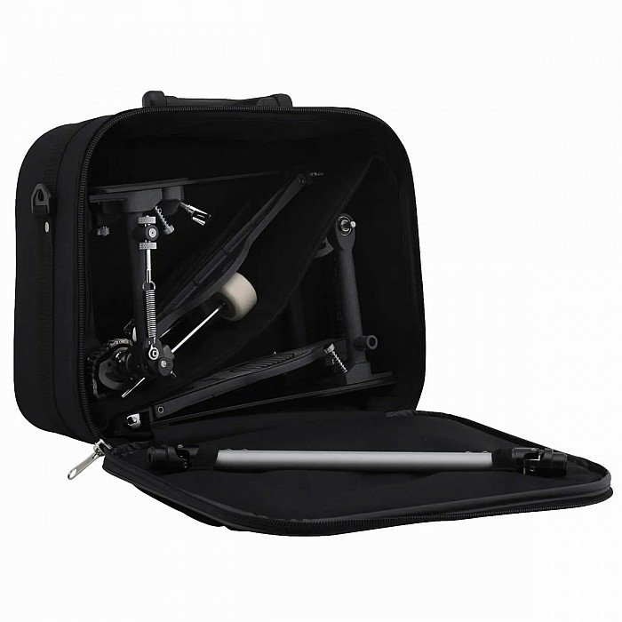 Play with comfort, play with ease, and FLY on our new professional model double bass drum pedal. Designed as an extension of our Speed Flyer single pedal, this new model captures all of the performance features of the single into a new double format for all of your double kick needs. A simple 3-point adjustment format for quick setup and optimal performance settings. Just like the single-kick Speed Flyer, you'll find that the classic attack and response of Ludwig's chain-driven pedal now delivers a healthier, more focused strike with its heavier beater. New smooth-action bearings provide a more responsive feel, and its toe-clamp redesign minimizes damage to the hoop while simultaneously creating a more secure and reliable grip. The Speed Flyer's improved baseboard adds stability to the rig, holding an attached drum key and providing orientation marks that make adjusting the cam a whole lot easier. This sleekly redesigned pedal also includes a semi-rigid bag to make travel easier and protect it while in transport. Engineered for both convenience and powerful response, this Ludwig Speed Flyer is double kicking at its finest.