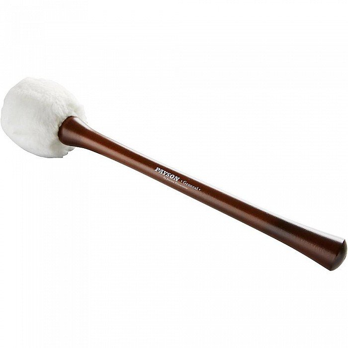 Large white soft pile, hard felt inner core wrapped in layers of medium felt, hard maple handle. The legendary Payson mallets will give you the tone and richness you've been looking for in a bass drum mallet.