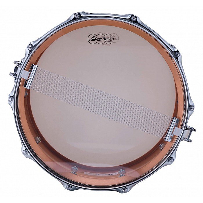 The Ludwig 14x6.5 Copperphonic Hammered Snare Drum (LC662KT) features a seamless, beaded, hammered 1.2mm copper shell with 45 degree bearing edges, 10 double-ended tube lugs, 2.3 triple-flanged hoops, P88AC throw-off, P35P butt plate, Ludwig 18-strand snare wires, Ludwig coated batter drumhead, Ludwig clear snare side drumhead, a polished hammered copper finish, chrome hardware, and Ludwig Keystone badge. With close to 100 years' experience building copper timpani, the newest member to the Ludwig USA snare drum range is the Copper Phonic snare drum. High volume performance with complete focus and dark-low qualities, the Copper Phonic is the next best in Ludwig's Phonic tone pallet. A true legend in the making.
