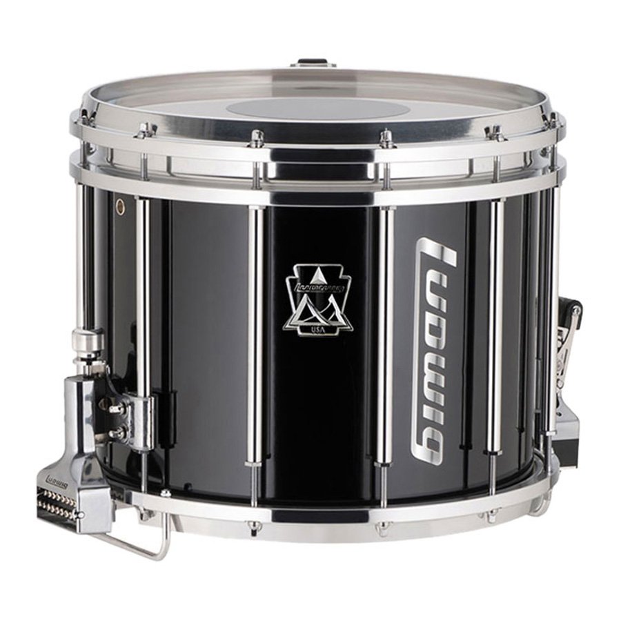 The Ludwig Ultimate snare drum was designed to meet today's marching demands. The minimal weight of this snare allows the player to achieve clean and crisp articulations. The secret is in the lightweight aluminum hardware that secures the heads, allowing the thick 8-ply maple shell to be completely suspended for exceptional projection and resonance.