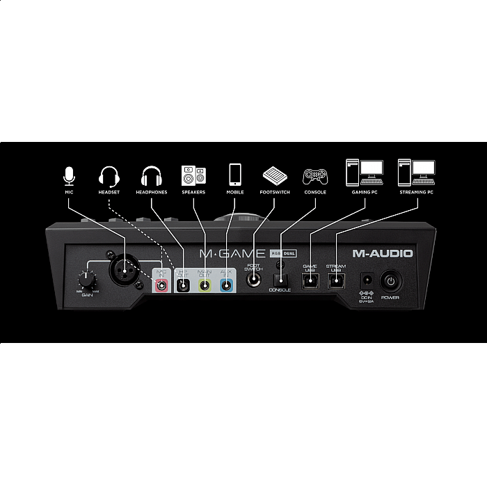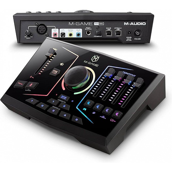 Designed in collaboration with the creative minds at M-Audio, the M-Game RGB Dual makes running your livestream easier than ever before. This dual-USB streaming audio mixer is intended for users who run a 2-PC streaming setup. And with RGB Dual’s smooth fader-based design, it’s easy to set the levels for your music, game, microphone, live chat, and sampler. Plus, the onboard sampling capabilities allow you to capture sounds and store them onboard for instant playback. And with free control software, you can add vocal effects, program the LEDs, and modify the routing of the entire interface. With its powerful, streamlined design, the M-Game RGB Dual is a veritable streaming game changer. Before RGB Dual, running a 2-PC streaming setup meant dealing with complex routing setups and adding a rat’s nest of cables to your room. Now, M-Game changes the equation, offering an elegant solution that’s powerful enough to handle anything.