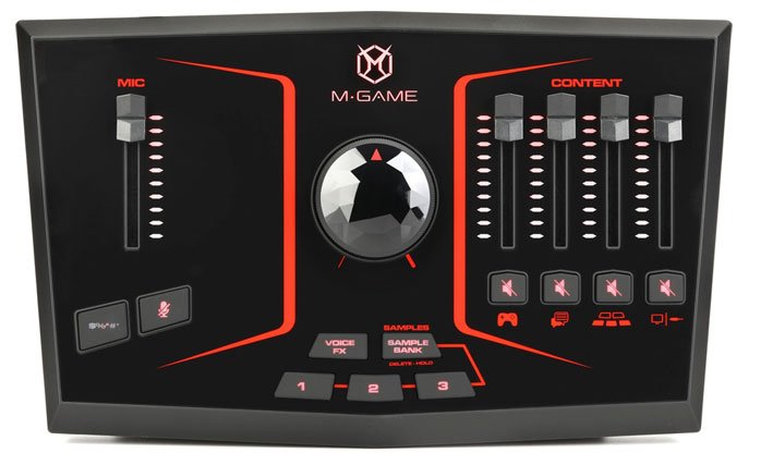 An interface this powerful demands a reciprocal level of control capabilities. Sweetwater is happy to report that the RGB Solo includes M-Game’s free control software: boot it up, and the control software allows you to add voice effects, distortion, chorus and modulation, reverb, and much more — and that’s just the audio performance! The control software allows you to create and save presets for specific microphones, LED setups, and routing schemes. The M-Game control software will enable you to flex your creative muscles on every aspect of the interface. Who wants to add an overly complicated piece of gear to their rig? Not many streamers. That’s why M-Game consulted numerous streaming pros while designing the RGB Solo. The layout is simple and efficient — use the five individual faders to set the level of your mic, chat, headphones, game, and samples.