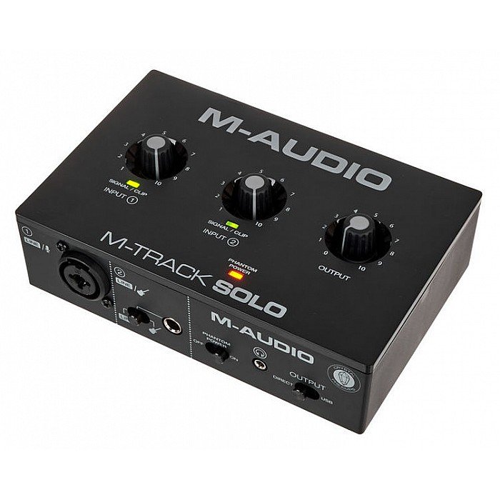 The M-Track Solo is the best featured, most portable class-compliant recording interface in its class. It delivers 48 kHz audio resolution in a compact and easy to use format that is ideal for creating music on any Mac or PC. This versatile interface is perfect for recording any type of sound source and features a single combo Crystal Preamp with phantom power, plus a switchable Line / Instrument input making it compatible with any guitar or microphone. Plus, with M-Track Solo's 2-channel recording you can use both line inputs simultaneously to capture digital pianos, drum machines or any other stereo 1/4"" device. M-track Solo is completely powered by USB, removing the need for an external power supply and making it perfectly portable for recording on-the-go. Throw it into your bag, grab a laptop, and create your next podcast, song, or mix anywhere you want!