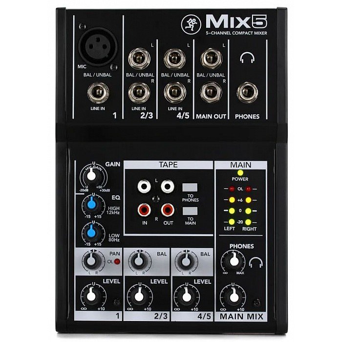Whether you need a small mixer for your live show or your creative work, the Mackie Mix5 proves that you don't have to give up decent sound quality, just because you need more channels or extra bells and whistles. In addition to the quality Sweetwater engineers have come to expect from Mackie, this extremely compact 5-channel mixer offers a single microphone preamplifier outfitted with a 2-band equalizer plus two additional channels with stereo inputs for keyboards or music players. For added convenience, the Mackie Mix5 even comes equipped with an RCA I/O path for recording. The Mackie name is synonymous with innovation, great sound, and Built-Like-a-Tank dependability. Mackie touches every corner of the creative space. From studio recording, mixing, and monitoring to a full range of live sound solutions, microphones, studio and live mixers, headphones and in-ear monitors, podcasting tools, amplification and processing. Mackie continues to bring the next generation of tools to the next generation of creatives.