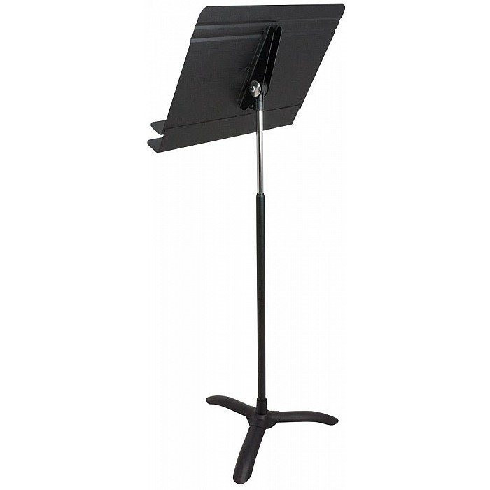 The Manhasset 5001 orchestral series stands have been designed with professional concert orchestras in mind. This model features a double lip which allows you to keep essential accessories including bows, rosin, pencils, reeds etc until you need them! The stand is made from rugged, durable aluminium which allows it to have a sturdy, robust build. It also has a powder coated black finish which is scratch resistant and features a ribbed desk for extra strength. The heavy gauge welded steel base provides stability and allows the stand to be secure when extended.