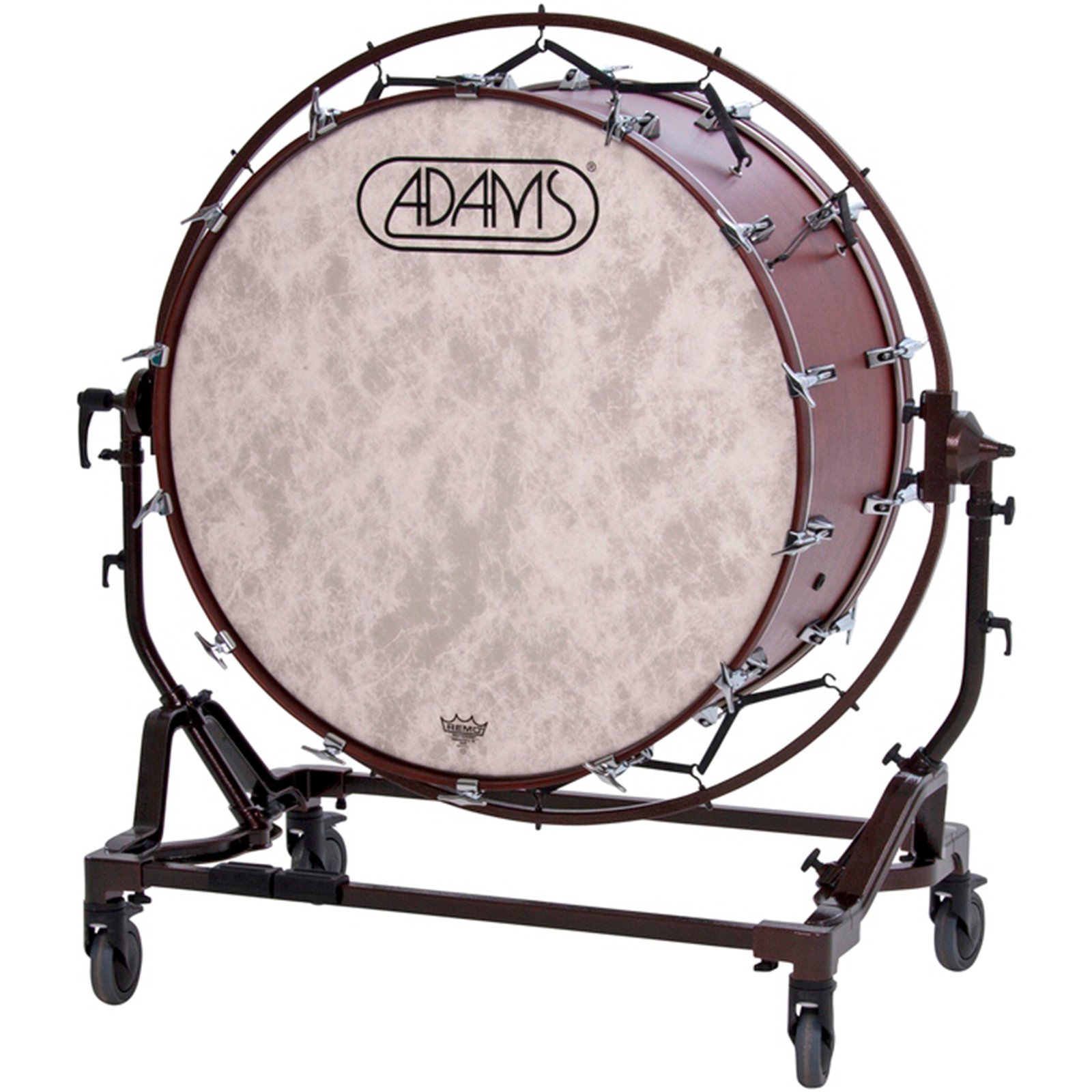 Adams Free Suspended Bass Drums have a full, resonant sound, and are available in many sizes to meet the distinct needs of all musical genres and ensembles. The free suspended stand has a two piece steel ring that surrounds the Mahogany Shell. The drum hangs freely from a web of rubber mounting bands, allowing the sound to project easily and fully. Adams bass drums are available in eight sizes, and each comes standard with 2” wide wooden hoops that are finished in a matching clear lacquer. The stand’s tilting mechanism allows the player to position the drum at any point in a 360 motion, and an integrated footrest reduces fatigue while using a leg for dampening. Fiberskyn III heads come standard for the sonic benefits of calf without the maintenance concerns of natural skin.