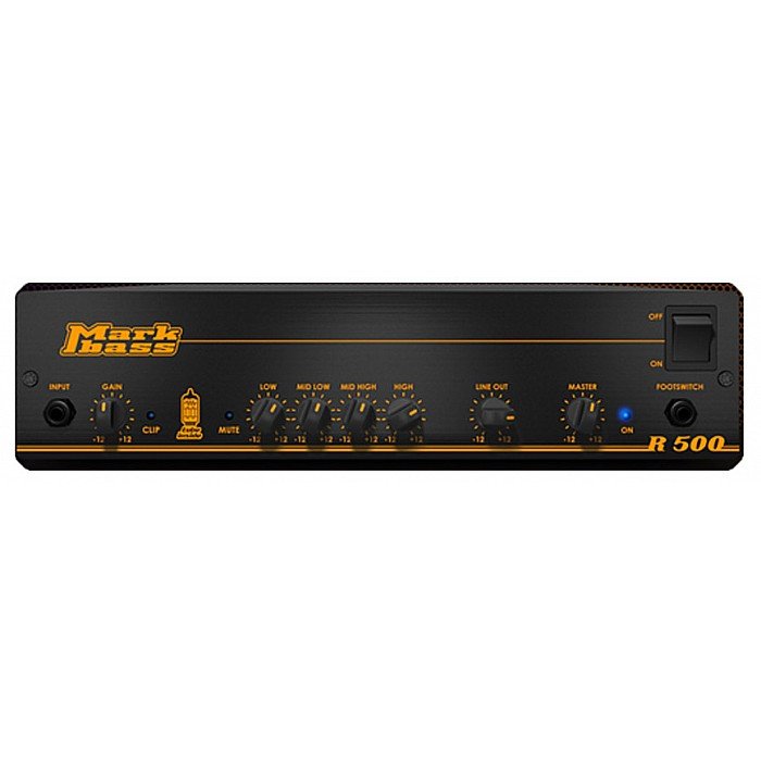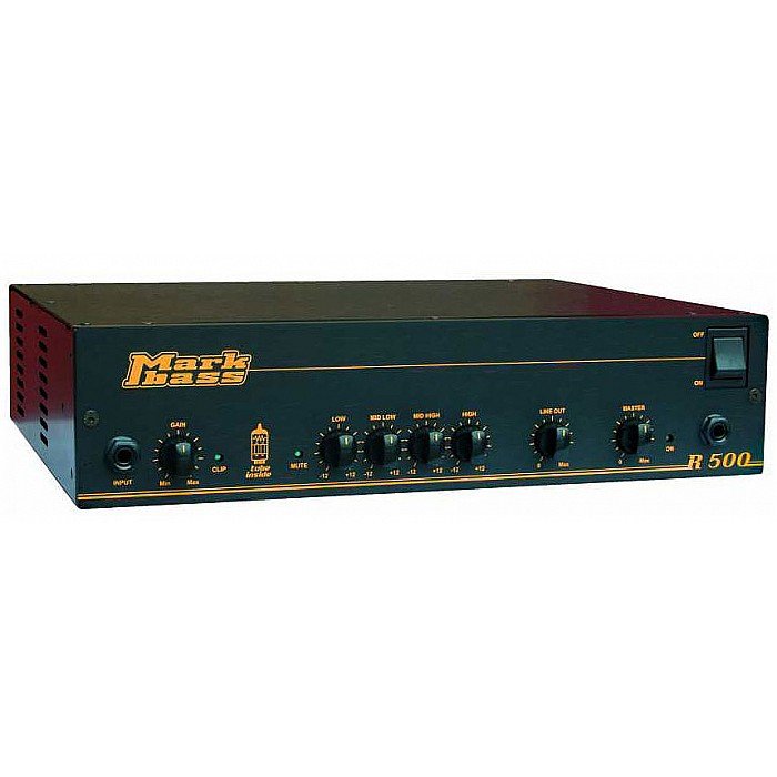 The Markbass R500 is a bass amplifier head that will have you rocking out old-school, rocking hard, creating your own alternative rock, or shredding up the stage stealing the spotlight from your guitarists! The 500W analog R500 amp (at 4 ohms; 300W at 8 ohms) features a tube preamp that will break up just the way you want it to, and a newly designed limiter that produces glorious distortion instead of cramping your style. The simple 4-band EQ gives you all you need to access a wide range of sounds for any genre. As far as controls, the Gain knob is for the amount of tube overdrive, whereas the Master knob is for your volume.