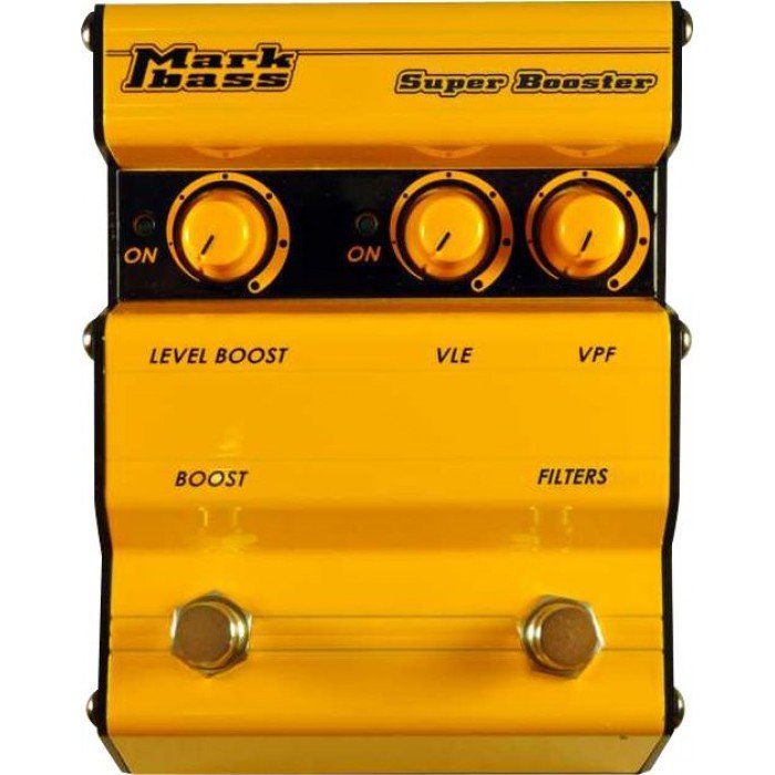 The Super Booster bass effect pedal from Markbass brings out the full potential of your axe, by boosting your bass tone with EQ-neutral clarity, while also featuring some signature Markbass filters. The VLE (Vintage Loudspeaker Emulator) filters out high frequencies to give you a mellower, less modern sound. The VPF (Variable Pre-shape Filter) boosts lows and highs, and cuts mids: especially great for slap and pick playing. The Markbass Super Booster pedal also gives you a clean Boost, very handy for helping you stand out when taking a solo. This highly practical effects pedal features true bypass and buffered bypass circuitry and also acts as an active DI.