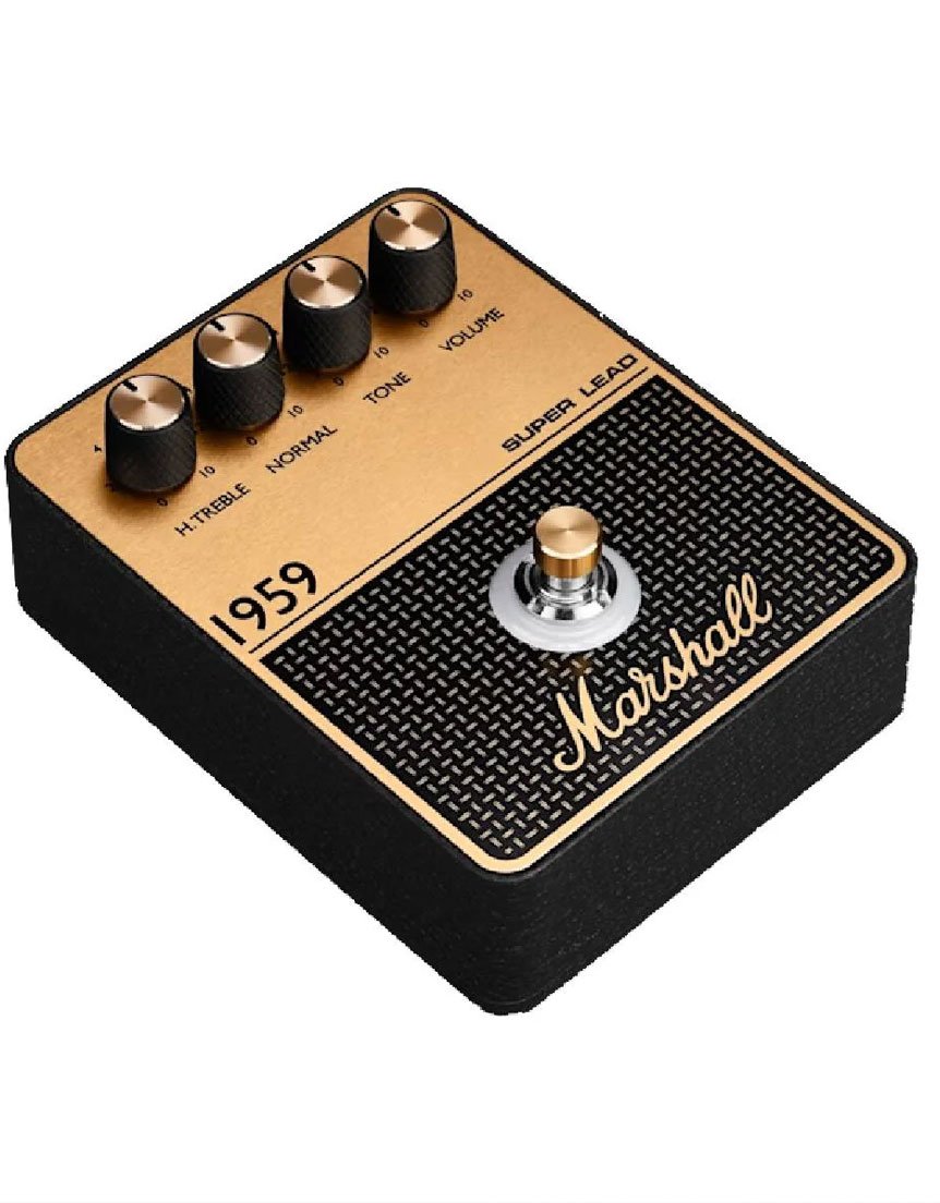 Few amplifiers elicit as much excitement in classic rock circles as the Marshall 1959 Super Lead — a.k.a. the original Plexi. Indeed, it was the Super Lead that gave rise to the now-ubiquitous Marshall amp stack. The Marshall 1959 Pedal captures the iconic overdriven crunch of the vaunted Super Lead in meticulous detail, and its intuitive rotary controls mirror those of the original amplifier, putting an entire universe of authentic British-flavored tones easily within reach. The 1959 Pedal also flaunts an illuminated footswitch, allowing you to stomp with pinpoint precision, even on the darkest stages. Complete with classic black-and-gold Marshall cosmetics, the 1959 Pedal is the ultimate amp-in-a-box Plexi, designed by the company that built the original. The 1959 Pedal replicates the legendary tone of the original Plexi: the Marshall 1959 Super Lead amplifier. With this stompbox on your pedalboard, you’ll be able to conjure up the sounds of Eric Clapton’s Cream in ’66, Jimi Hendrix at Woodstock in ’69, and countless other world-famous Plexi devotees, such as J Mascis, Malcolm Young, Randy Rhoads, Simon Neil, and Yngwie Malmsteen, among others. Built to rigorous standards, the 1959 Pedal packs a significant piece of rock ’n’ roll history into a compact guitar pedal.