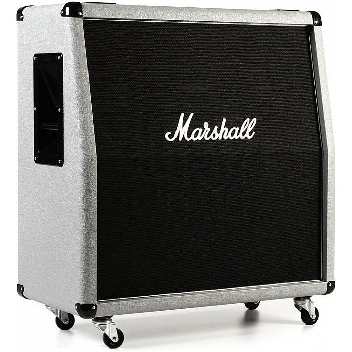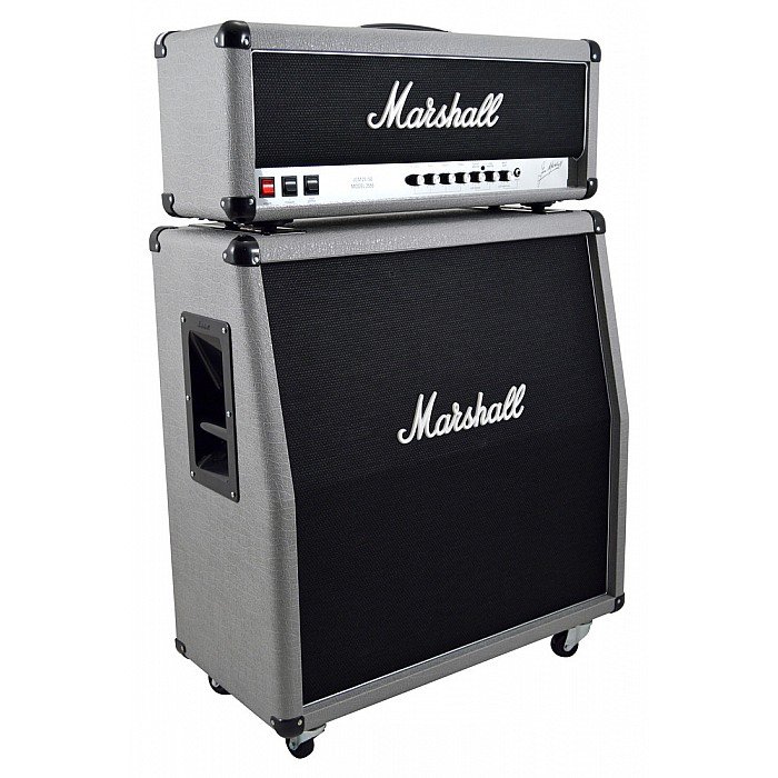 The 2551AV Silver Jubilee re-issue 4 x 12″ angled cabinet is silver vinyl covered and loaded with 70 Watt Celestion ‘Vintage 30' speakers. Partner this mono/stereo cab with the 2555X head for the half stack, and with the 2551BV straight front cab to make the Silver Jubilee re-issue full stack.