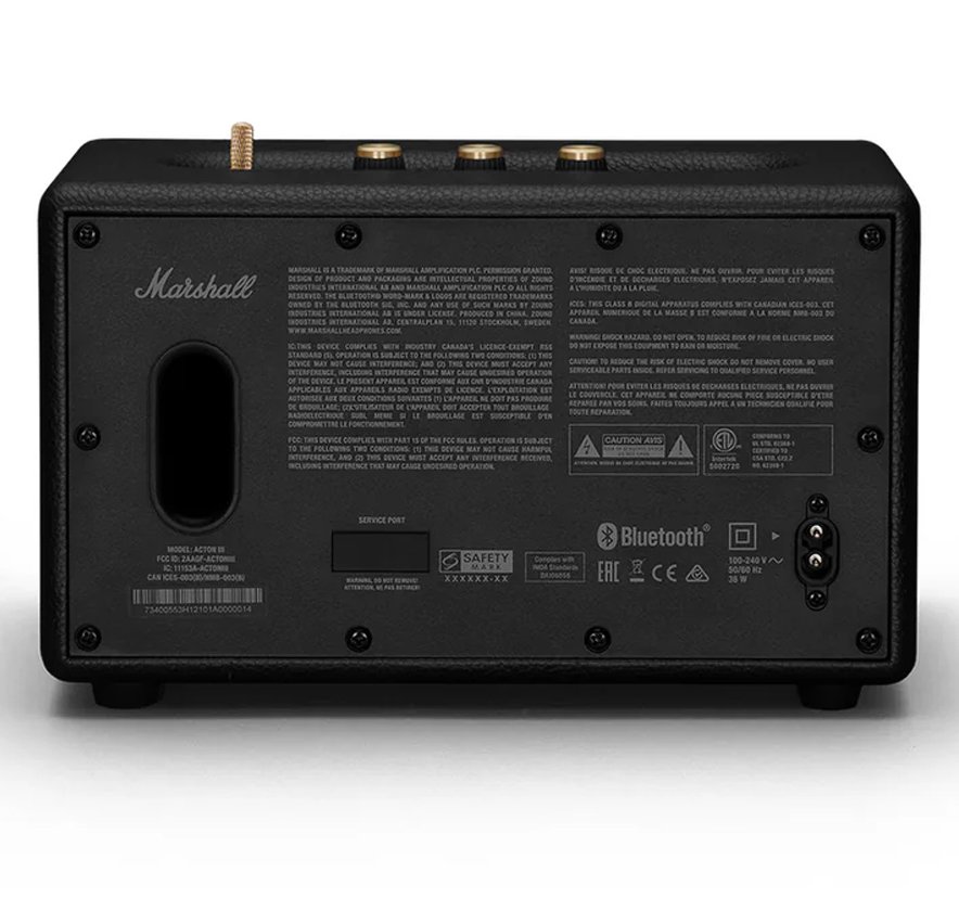This generation in the home lineup features an even wider acoustic footprint than before, with Marshall's characteristic surround sound that has been redesigned to give you a more immersive experience. Generation III speakers carry outward-angled treble and updated waveguides to deliver solid sound that's so wide it reaches anywhere in the room. Fill your room with Marshall's signature sound with the black-colored Acton III Bluetooth Speaker System from Marshall. Inside the speaker is a woofer and dual outward-angled tweeters that deliver a wide soundstage and 60W of audio power. On the outside, the Acton III features Marshall's iconic styling that's reminiscent of its famous stage amps. A front grille is emblazoned with the Marshall script badge, and the rest of the speaker is wrapped in a leather-like material. Matching its old-school cool is support for modern Bluetooth 5.1 streaming from your mobile device, or plug in an optional 3.5mm AUX cable to keep things vintage.