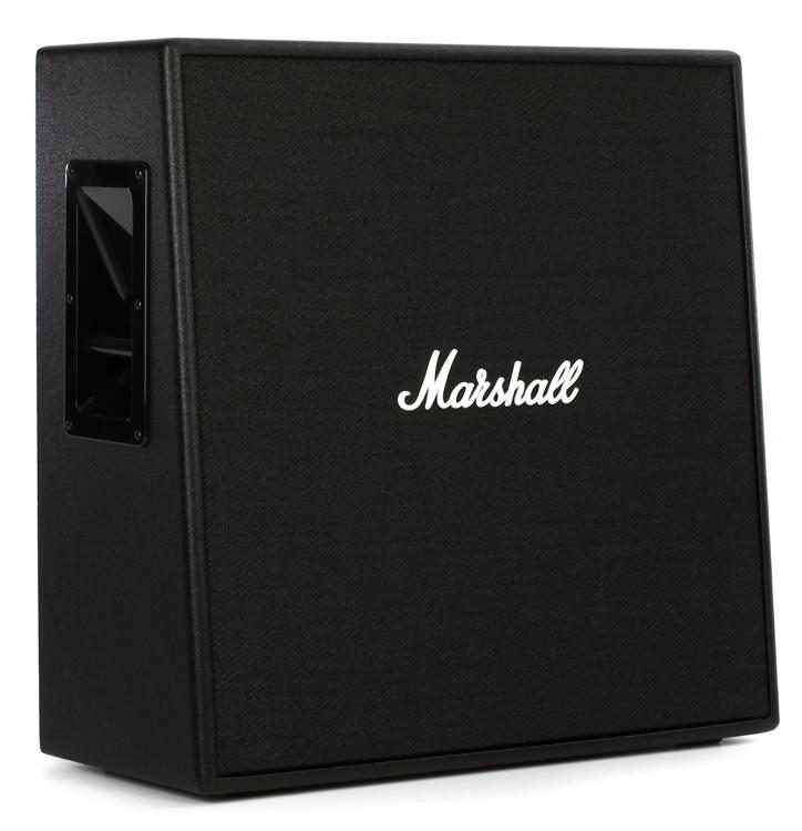 The Marshall Code 4 x 12" speaker cabinet is custom voiced to bring out the best in your Marshall Code amp head. Plug in with your Code100H and let loose with hand-picked modeled Marshall tones from the past five decades. The Code cab's 30-watt speakers are designed to give you moderate headroom before breakup for clean tones that sing when you need them, and with vintage characteristics as you move up into crunch territory. The cab's slant design helps you hear more of your high end as you stand next to it for better monitoring. Sweetwater guitarists give the Code412 our seal of approval for a value cab that succeeds in bringing to life the sounds in the Marshall Code head.